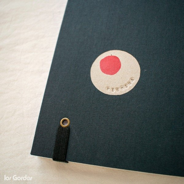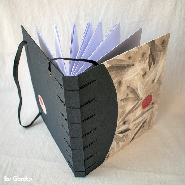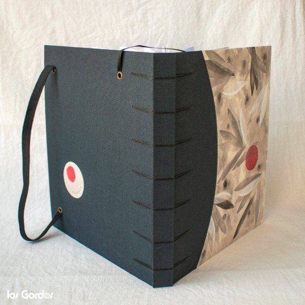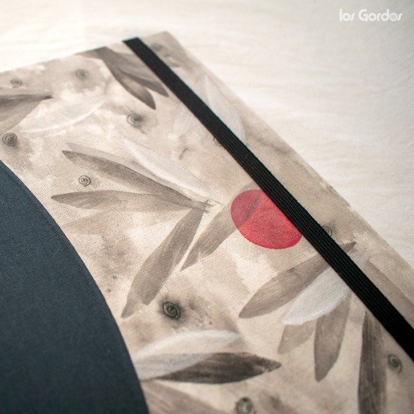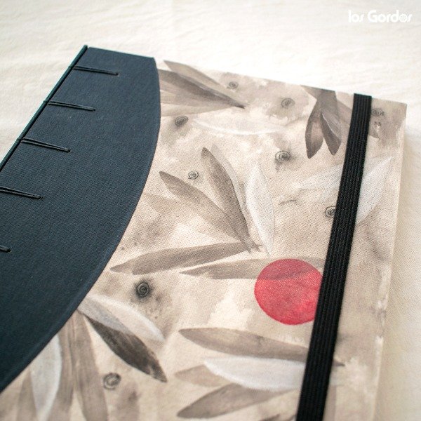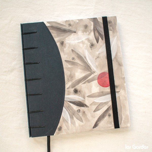 Tapas: algodón rayado pintado y estampado a mano + tela de encuadernación.