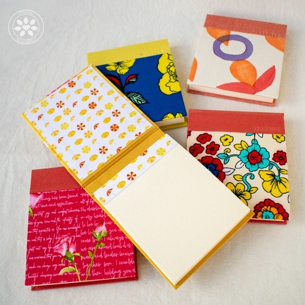 En el taller quedan cortes de telas, papeles y cartones que guardo para usar en algún proyecto. Este año, para hacer espacio y renovar, comencé a usar todos esos materiales. Estos blocks están hechos con esos tesoritos que fui guardando en todos estos años.